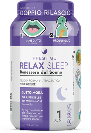 BESTSELLER RELAX SLEEP is a melatonin‑based supplement that helps reduce the time needed to fall asleep. Chamomile supports relaxation and mental well‑being, while vitamins B6 and C aid normal psychological function. Zinc completes the formula by supporting immune system function.